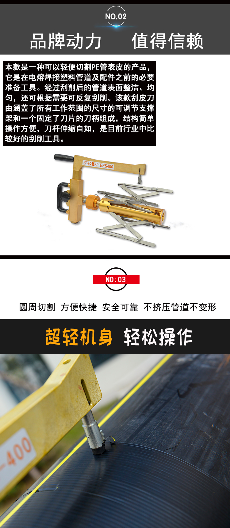 易沃克旋轉式PE管刮皮刀ERS400 去氧化層刮刀