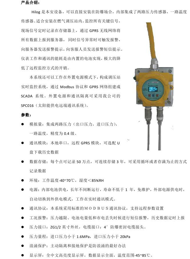 Hilog調(diào)壓站監(jiān)控終端(GPRS遠傳)