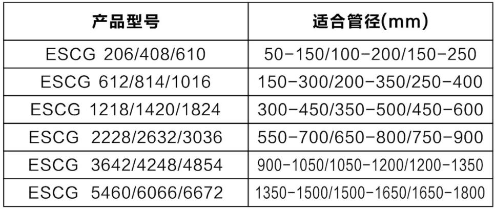 ESCG 612,針對管外徑150mm-300mm