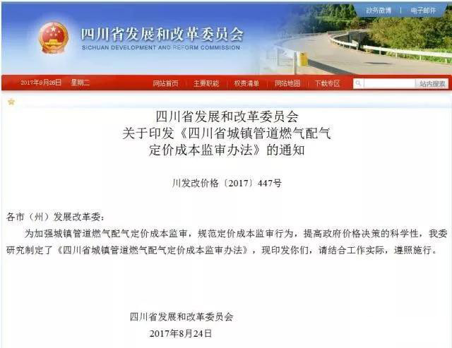 2017年發(fā)改委《關(guān)于核定天然氣跨省管道運(yùn)輸價(jià)格的通知》,根據(jù)《天然氣管道運(yùn)輸價(jià)格管理辦法(試行)》和《天然氣管道運(yùn)輸定價(jià)成本監(jiān)審辦法(試行)》有關(guān)規(guī)定,對(duì)中石油北京天然氣管道有限公司等13家跨省管道運(yùn)輸企業(yè)進(jìn)行了定價(jià)成本監(jiān)審,核定了中石油北京天然氣管道有限公司等13家跨省管道運(yùn)輸企業(yè)管道運(yùn)輸價(jià)格。自2017年9月1日起執(zhí)行。