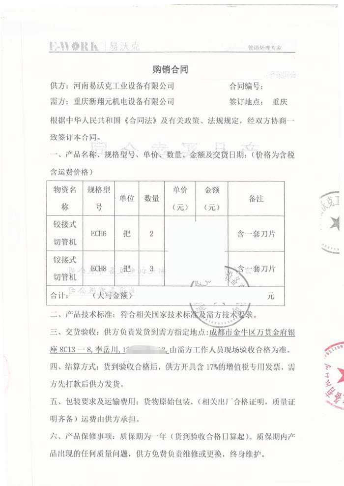 2017年重慶新翔元機(jī)電設(shè)備有限公司合作業(yè)績(jī)