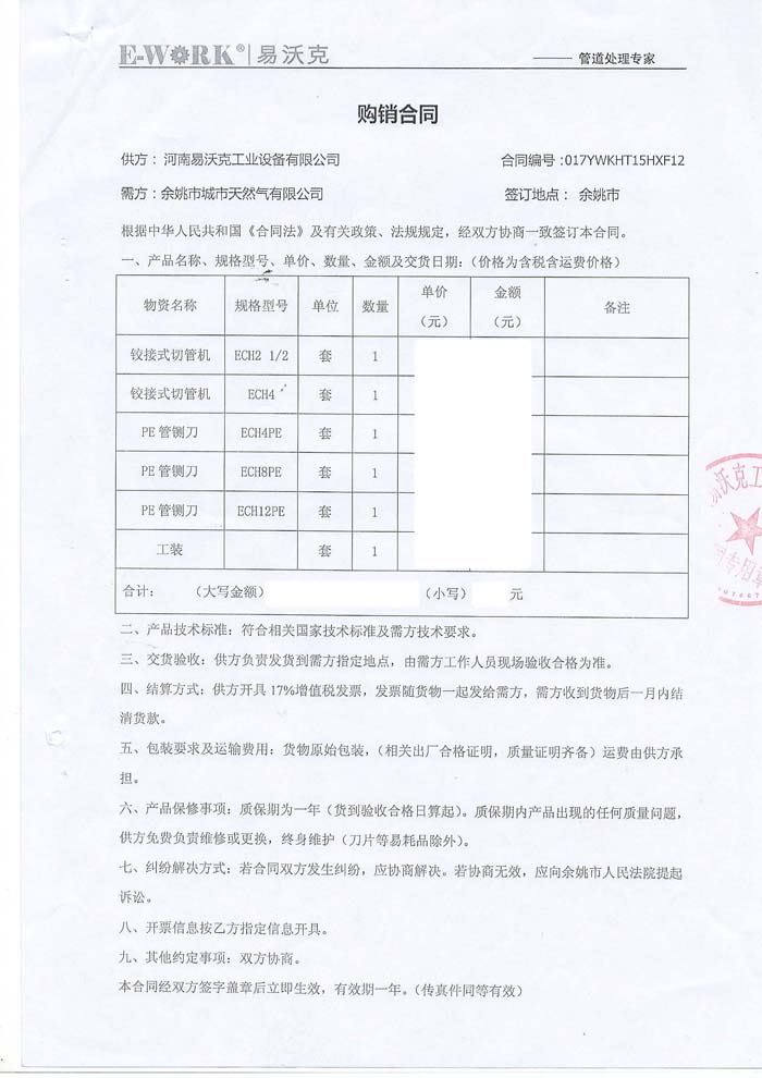 2015年浙江余姚市城市天然氣有限公司合作業(yè)績(jī)
