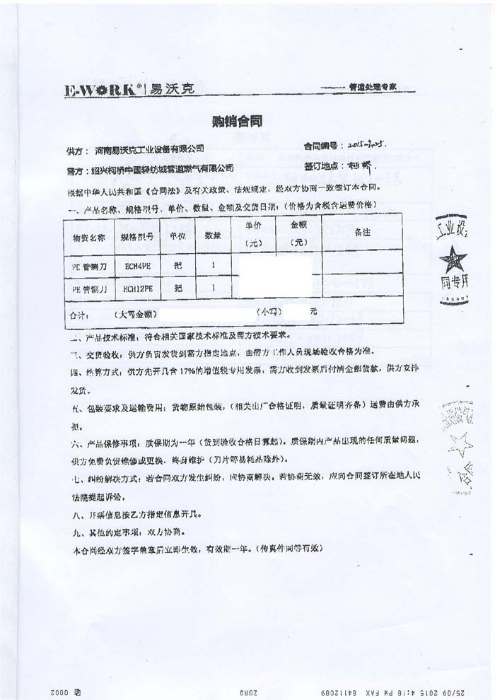 2015年浙江紹興柯橋中國(guó)輕紡城管道燃?xì)庥邢薰竞献鳂I(yè)績(jī)
